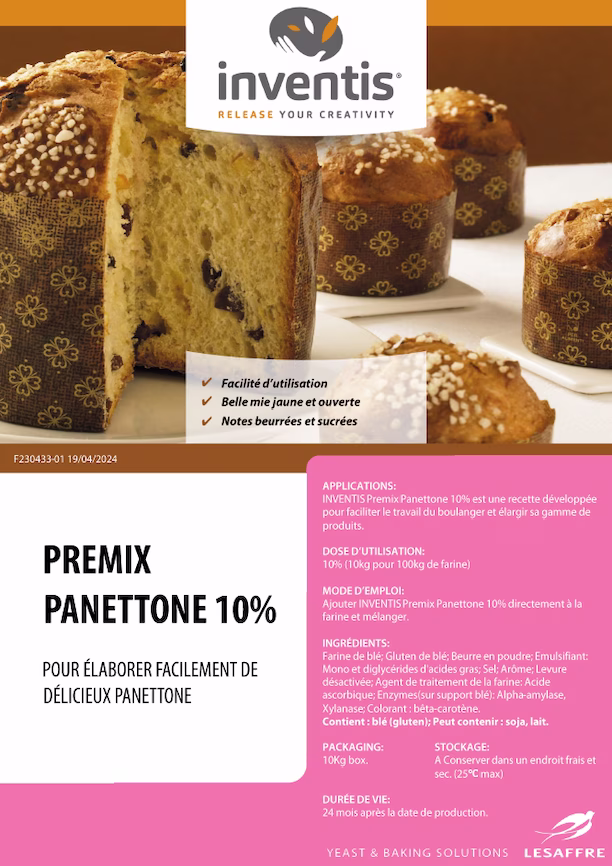 Inventis® Premix Panettone 10% est une préparation prête à l’emploi pour réaliser des panettones moelleux et traditionnels.