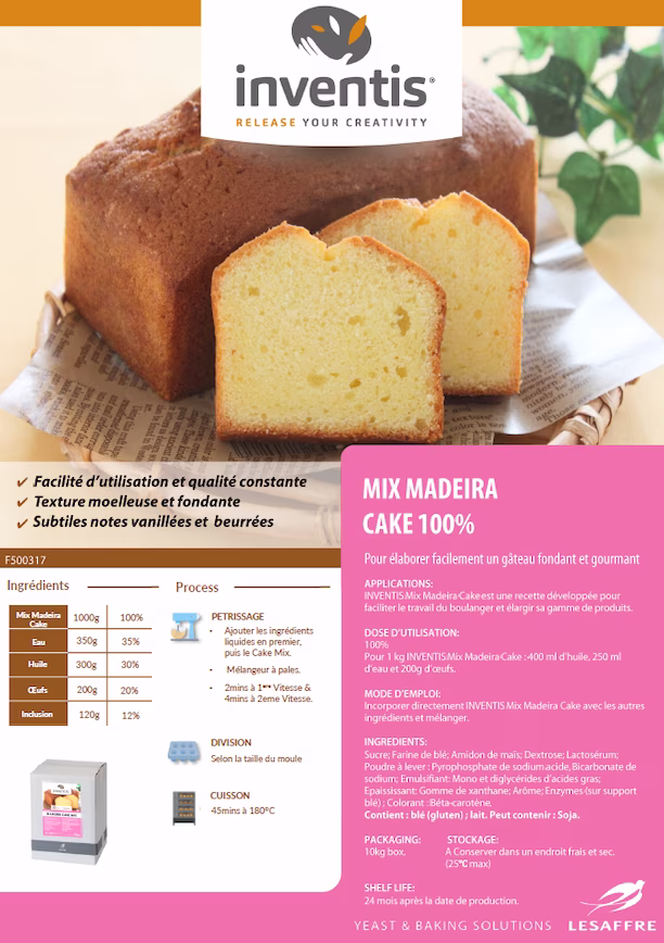Choose Inventis® Madeira Cake Mix for high-value creations, ready in record time.